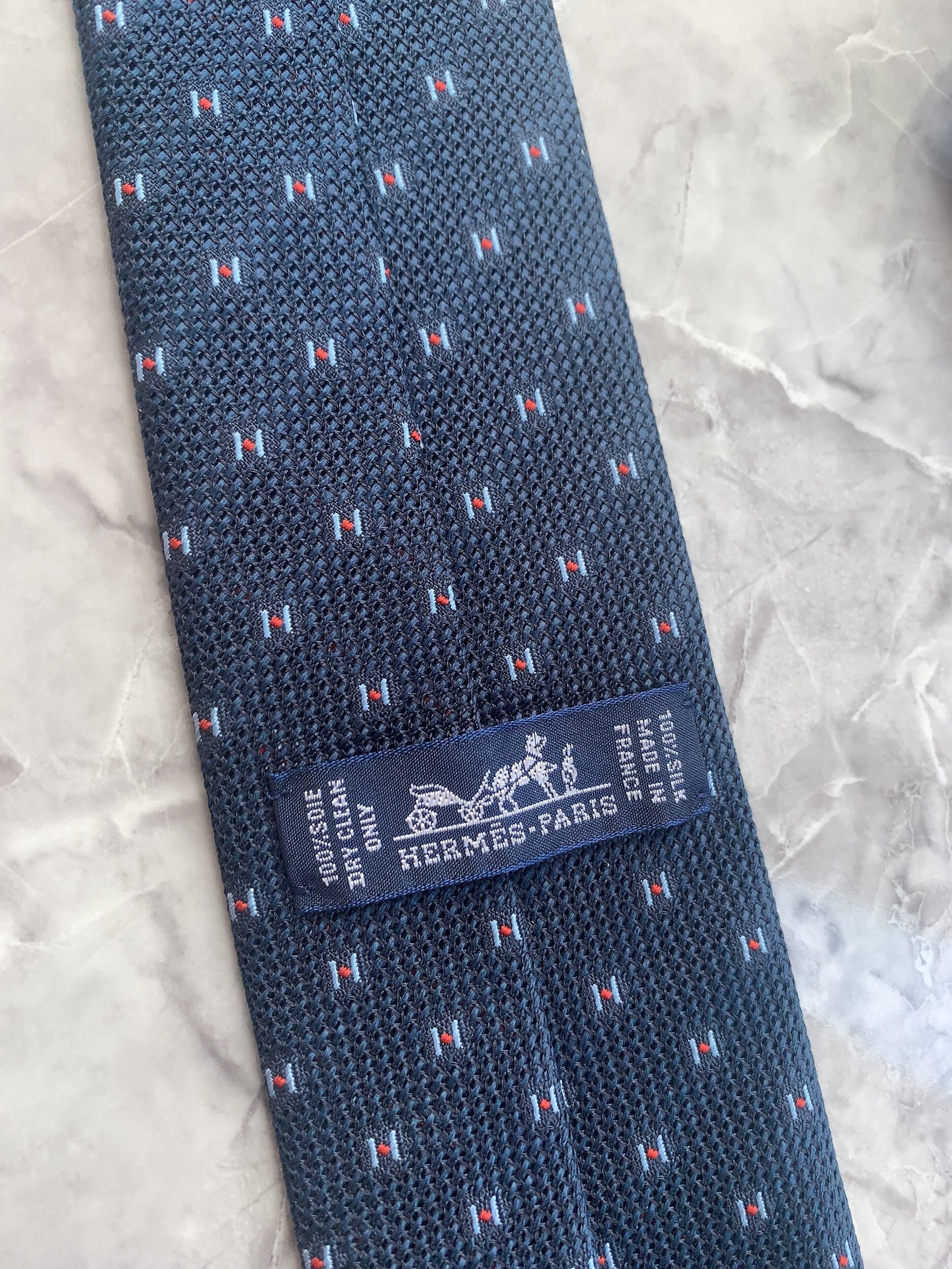 【美品】エルメス✨H柄 エルメスネクタイ ネイビー Hermès ネクタイ