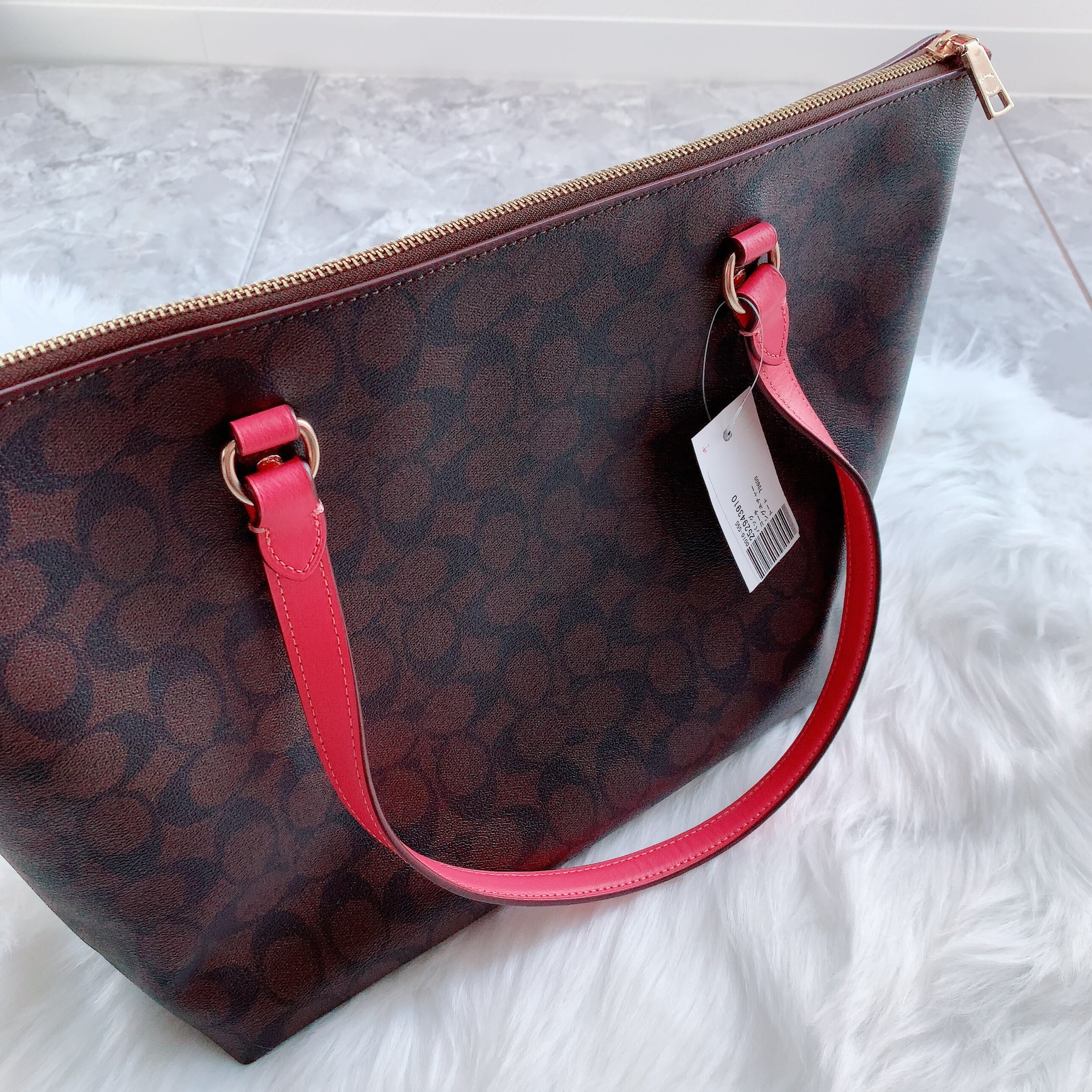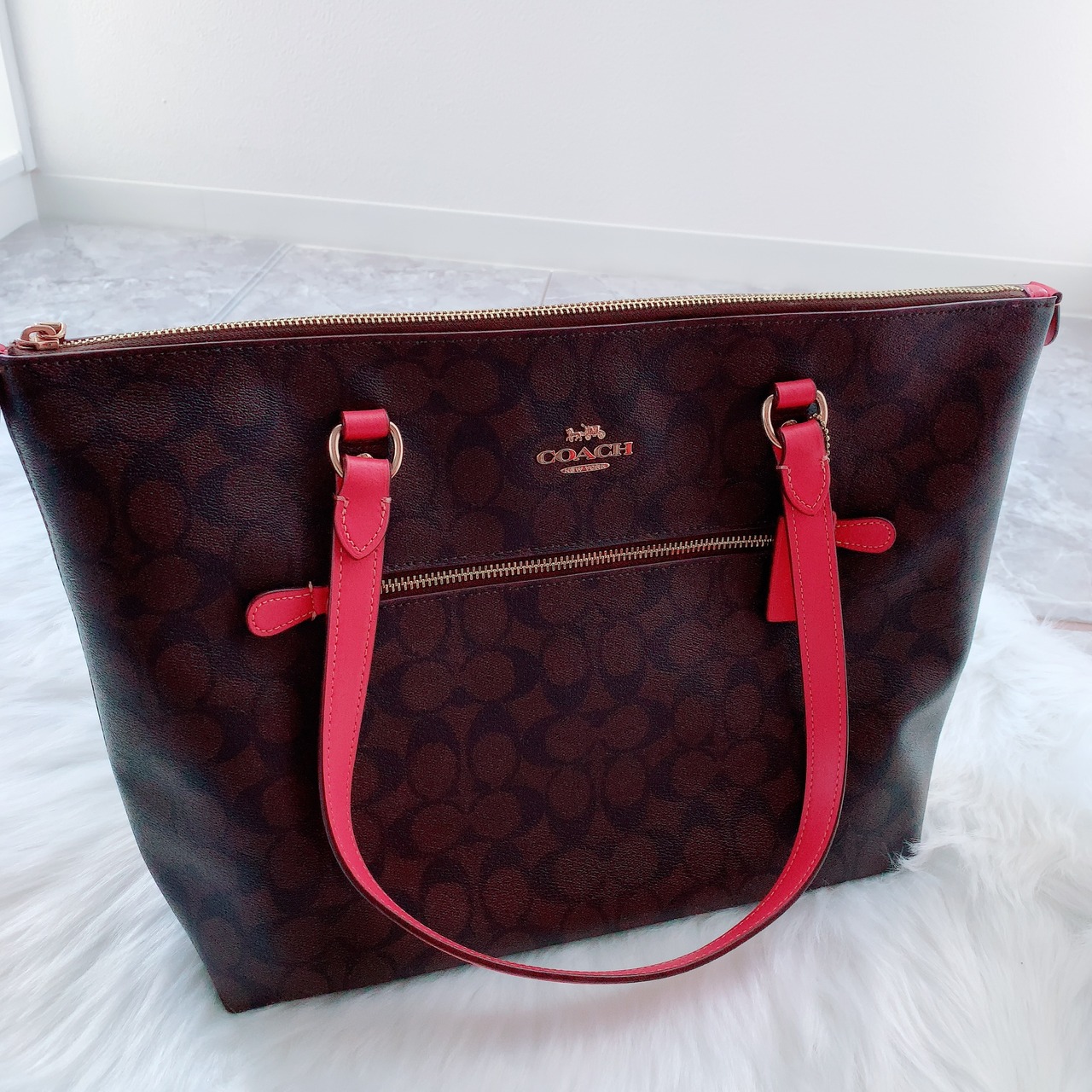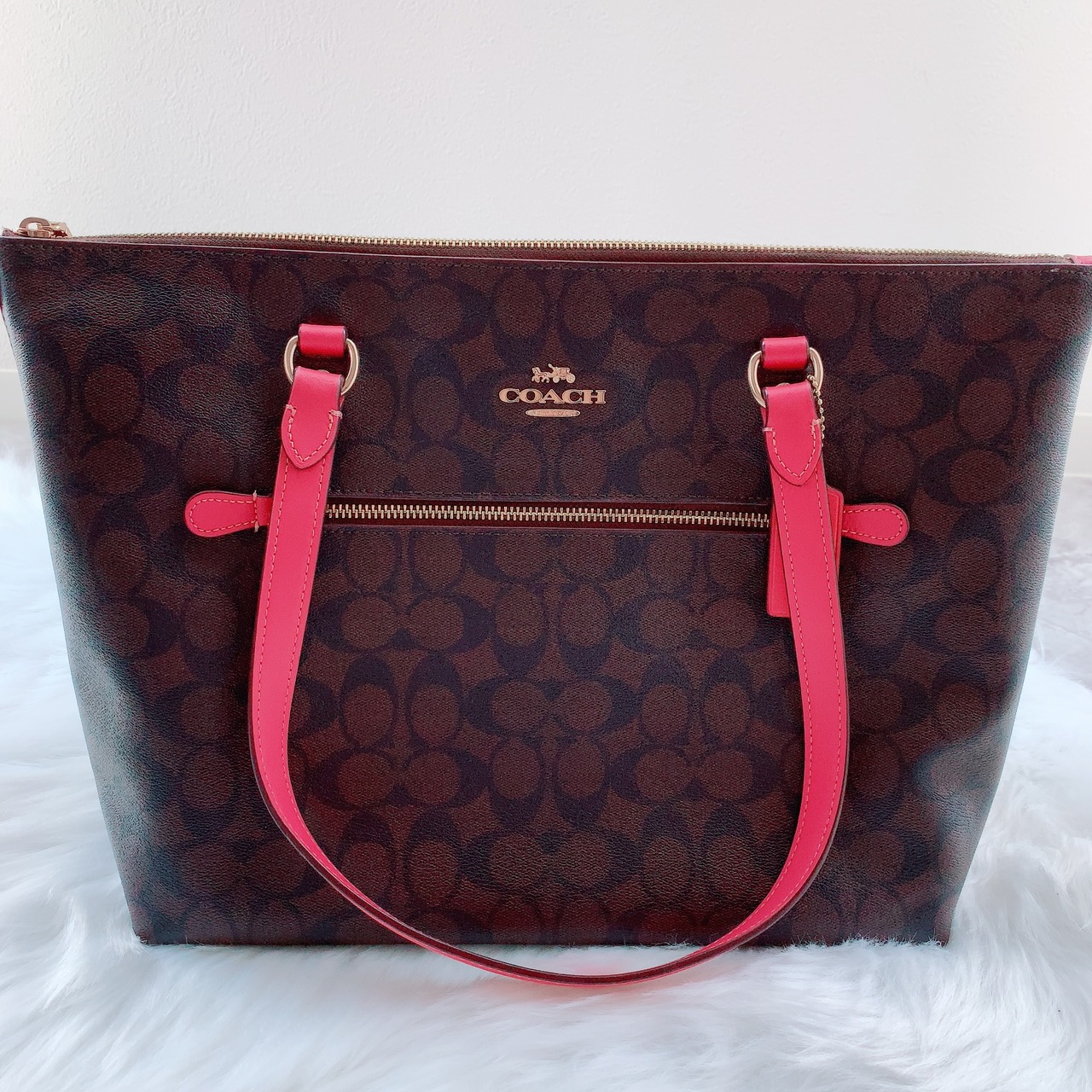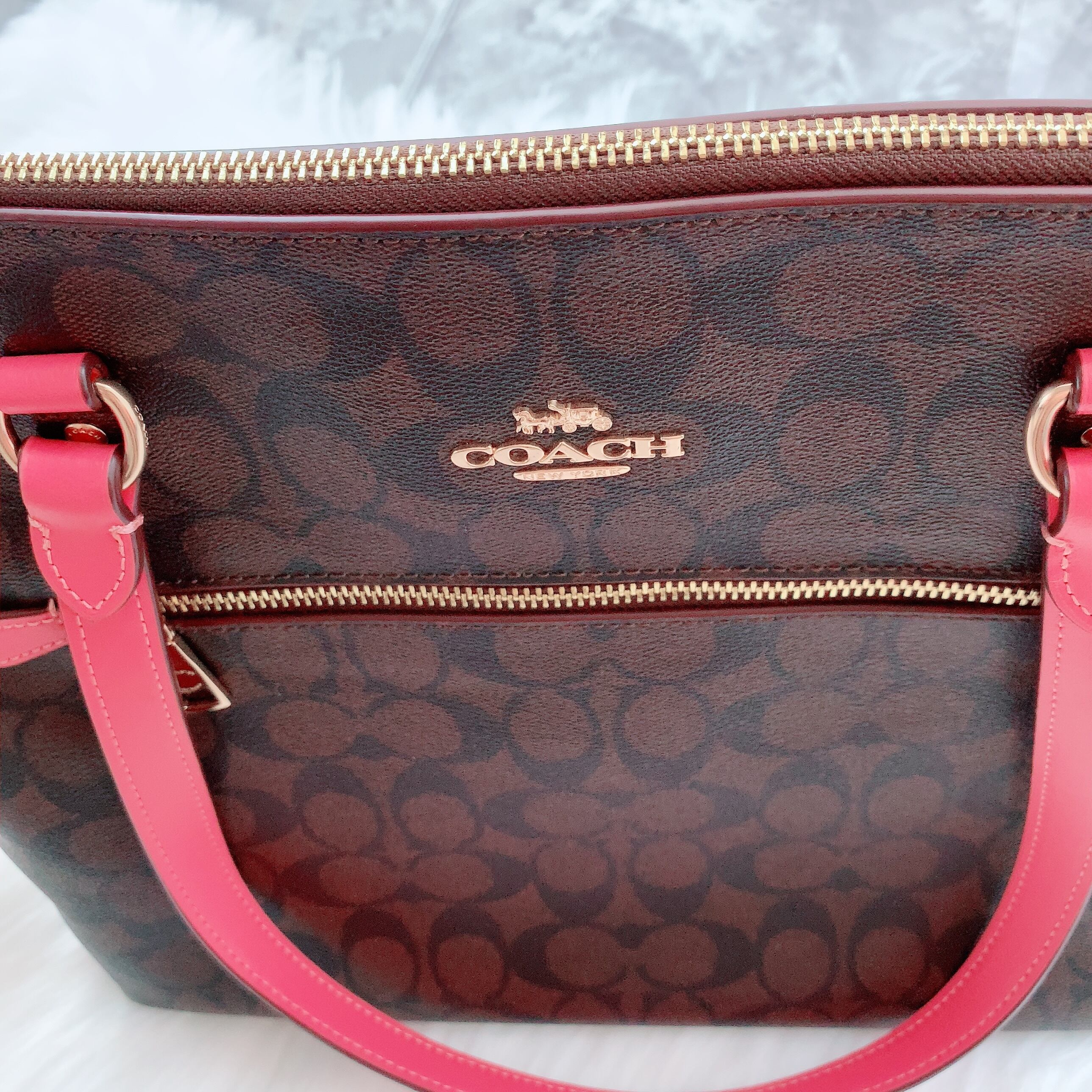 極美品 ✨ COACH シグネチャー ブラウン ピンク トートバッグ ワイド
